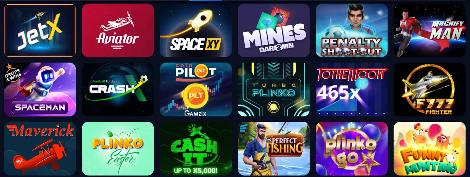 Será redirigido a una nueva sección, ubíquese el filtro 1win games y verá varios títulos desarrollados por el propio casino
